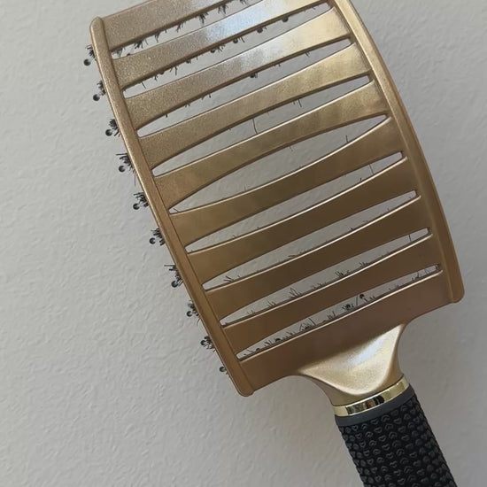 Its vented, curved design helps speed up blow-drying while fitting comfortably to your scalp for better control and smoother styling. The blend of nylon pins and boar bristles works to detangle, smooth frizz, and add natural shine while giving your scalp a soft, relaxing massage.